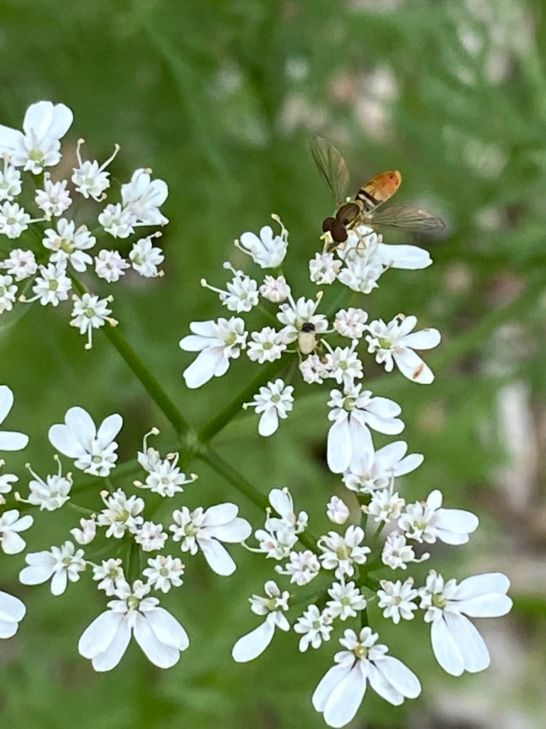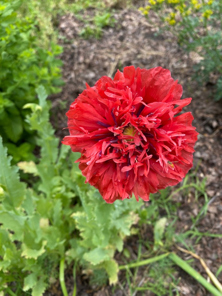 Thus, this past week, I turned my attention away from the vegetables to the areas surrounding the production field in order to nurture the whole farm system that helps me do what I do. The kids and I walked through the asparagus field and randomly seeded around 200 sunflowers throughout the rows. We hope that these 12-foot tall flowers will attract beneficial insects, like lacewings and predatory wasps that will prey upon the asparagus beetle larva as they munch their way through the asparagus ferns now that we’ve stopped harvesting. If it works, we should have fewer beetles next year which means less spear damage and more spears that we can sell and share. I also spent a bunch of time seeding flowers in the herb garden. Some of these are edible, but I mostly grow these for my own enjoyment and for the native bees and pollinators that show up when they bloom.