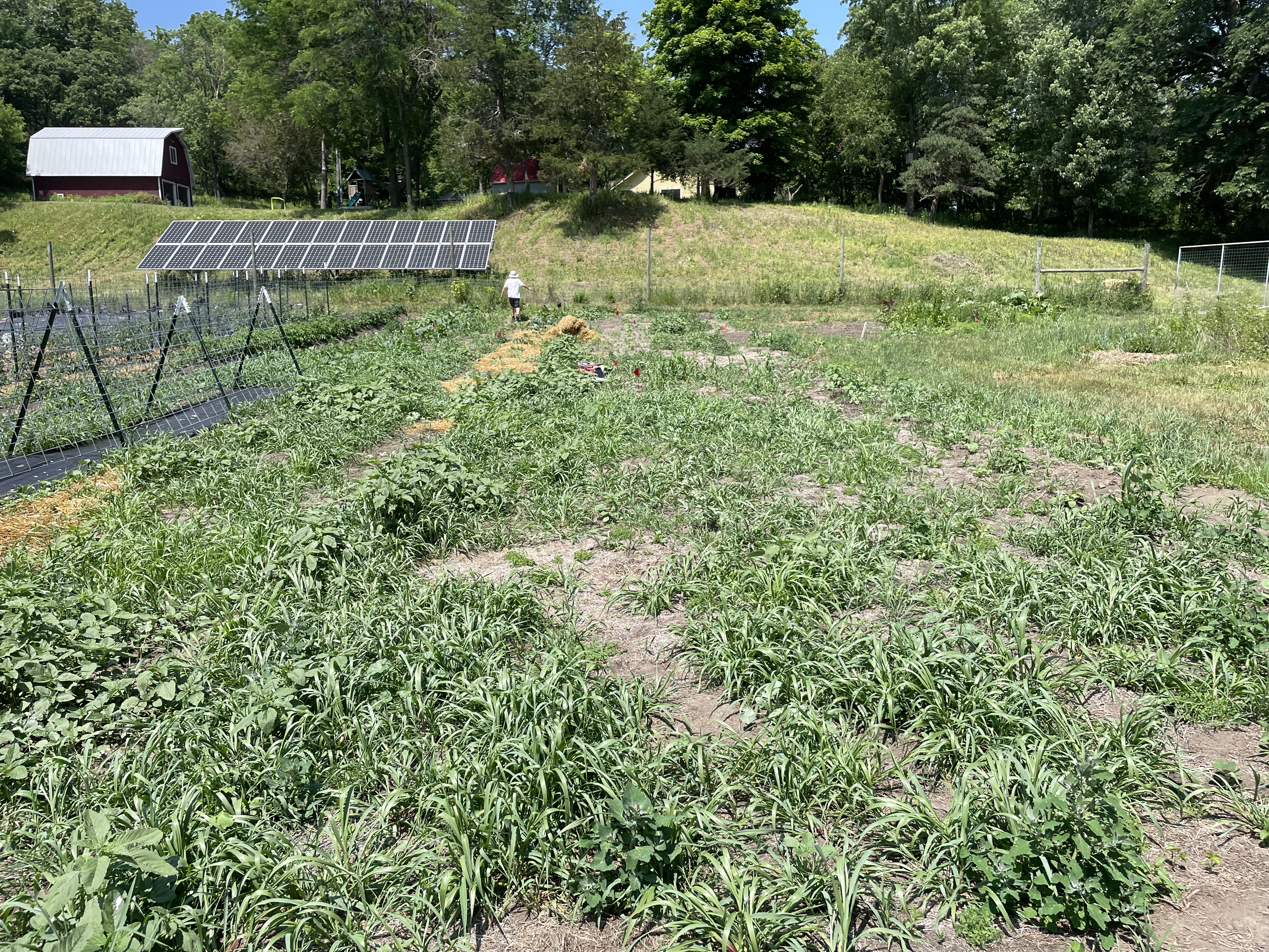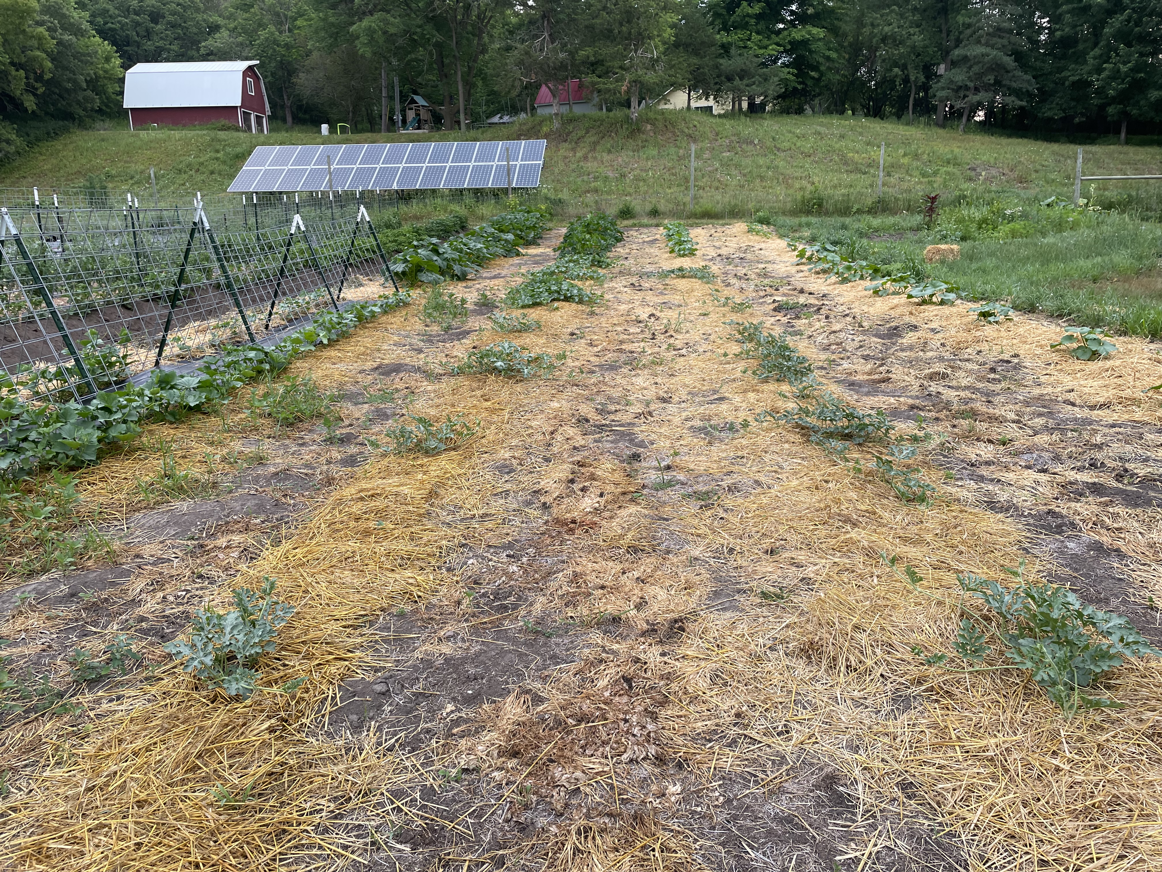 This past week was mainly spent weeding, weeding, and more weeding. Now that nearly everything has been seeded for the year, we turned our attention to cleaning up all of the vegetable beds, getting the rest of the straw mulch on, and thinning the crops that had germinated. Simon and I worked together doing much of this, chatting and sharing stories with each other, but sometimes Simon had to power through on his own while I was occupied pruning tomatoes.