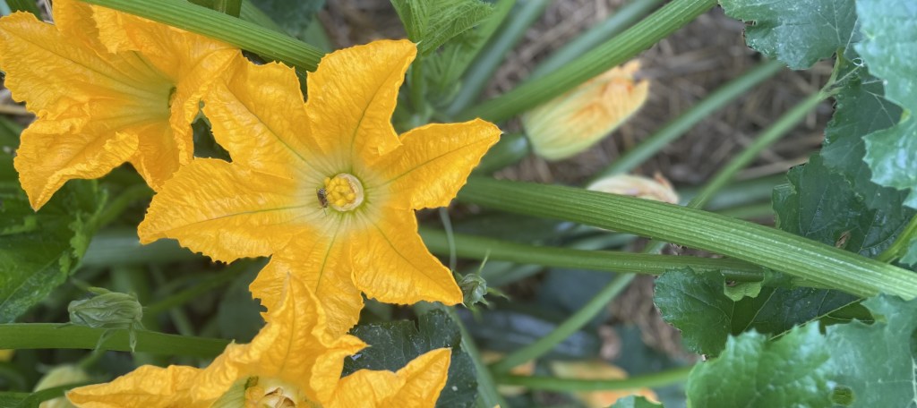 Happy Independence Day! I knew July was coming, but honestly I didn’t expect it to arrive quite so soon. Living on the land means that nowadays I primarily mark the passage of time in summer according to what is blooming, which insects are showing up, and when things need to be harvested. For instance, now is the time to remove invasive wild parsnip from the prairie before it sets seed and multiplies. I saw my first Japanese beetle on some cabbage the other day, right on schedule, and the fireflies have been busy trying to find each other in the evening sky near our barn. The elderberry bushes are full of flowers and there are all sorts of bees everywhere. My favorites are the teeny tiny ones. They are out there foraging alongside the bigger honeybees and holding their own. I’ve always had a soft spot for the underdog. I saw this one pollinating a zucchini blossom early this morning. You go, little bees!