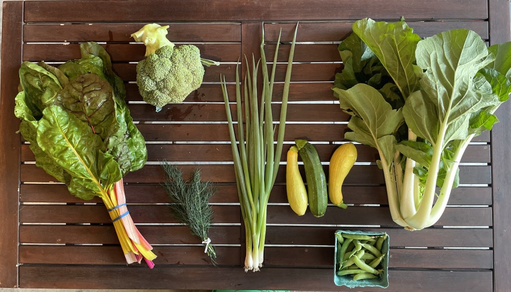 Rainbow Chard – Rainbow chard is beautiful plant with some leaves having red stems, some yellow, some white, and some pink. It’s a tender green that you can add it to just about anything – eggs, pizza, pasta, salads. I’m going to try and quick pickle some this week to use in an egg dish with scallions and cilantro.