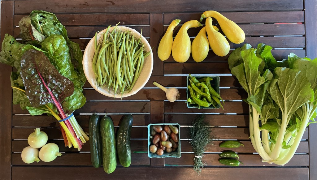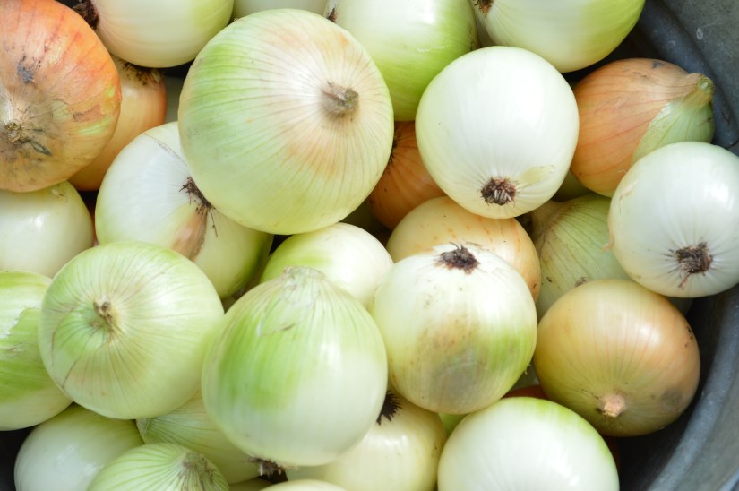 Onions – Keep in a dark, dry, well-ventilated place at a cool room temperature. These onions are freshly harvested and haven’t gone through the curing process that we typically use when preparing onions for longer storage. Therefore, they won’t last as long as those you might buy at a store and I might even consider storing them in the fridge because of that.