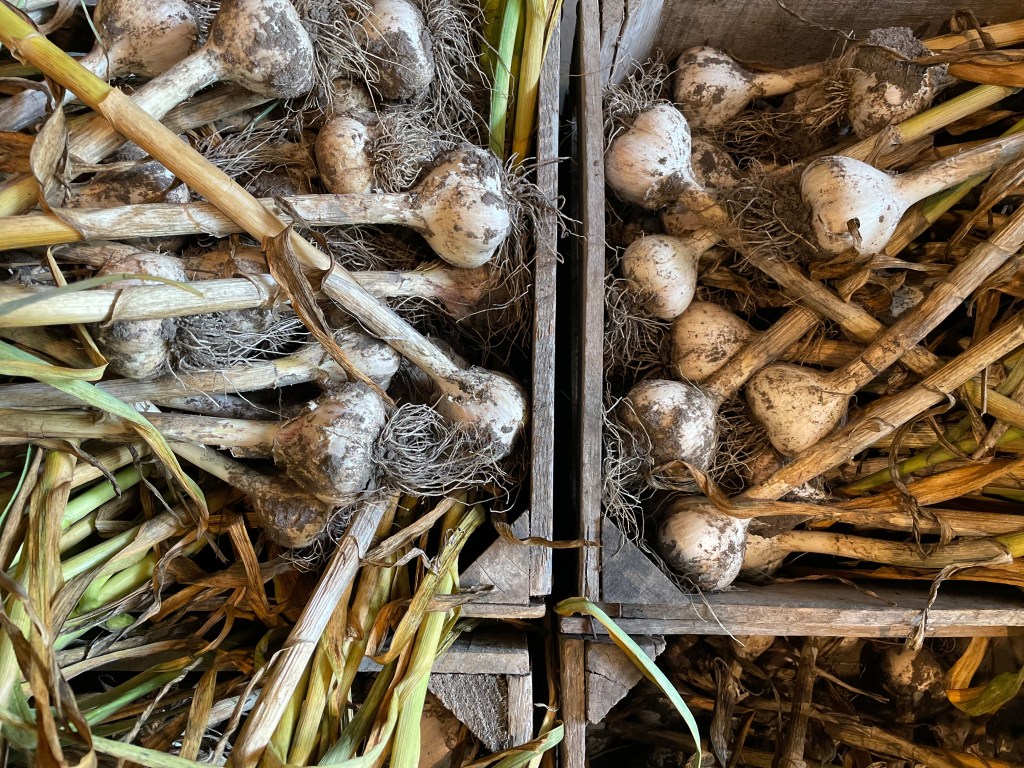 Garlic – Keep in a dark, dry, well-ventilated place at a cool room temperature. Keep in a dark, dry, well-ventilated place at a cool room temperature. The garlic you’re getting this week will be fresh and will be a little on the spicier side because of it.