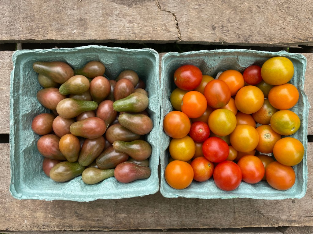 Cherry or Saladette Tomatoes (I am hoping enough ripen for all Standard Shares this week, but if you don’t get them this week, you will next) – Cherry tomatoes can over-ripen quickly, so it can be a good idea to store them in the fridge if you’re not going to eat them right away.