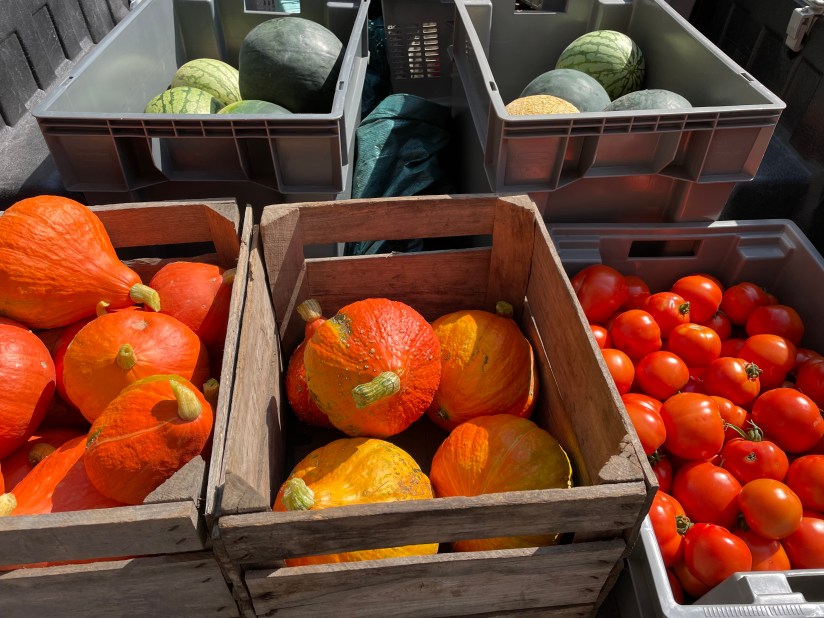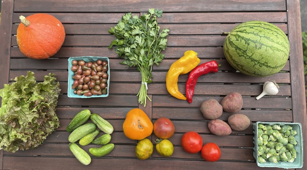 It sure doesn’t feel like September yet, does it?! The kids are back in school, the bucks have once again grown their antlers, the days are getting shorter, and some of the songbirds have already headed south for the winter, but it’s still in the 90s. I’m actually giving you winter squash this week which feels absolutely nuts to me given the weather, but they ripened up a little earlier this year (due to said weather) and it IS technically meteorologic fall when it’s normally a good time to start giving you these kinds of veggies. The good thing about winter squash is that you can just stick it in a cool, dark place for several months if you’re not quite ready for it yet. Hopefully you won’t have to wait that long to enjoy it and it will be fall (for real!) soon!