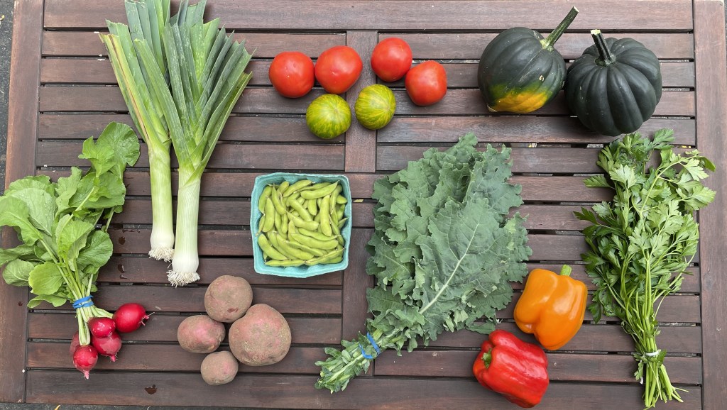 There is not a whole lot to report that is different from what I shared last week. My primary mission these days remains to clean up the field in preparation for the winter. I continued to pull out spent plants, weed, and seed cover crops. This is actually taking a surprisingly long time for certain beds (two hours!) as the number of dandelions that had taken root in some places was higher than I had anticipated. I am looking at it like this though: dandelion roots go deep and they help to break up compaction so it was good to let them get so big; there will now be fewer dandelions to remove in the spring when time is short; and my lower back needed a workout anyway, so all-in-all… I consider it time well spent.