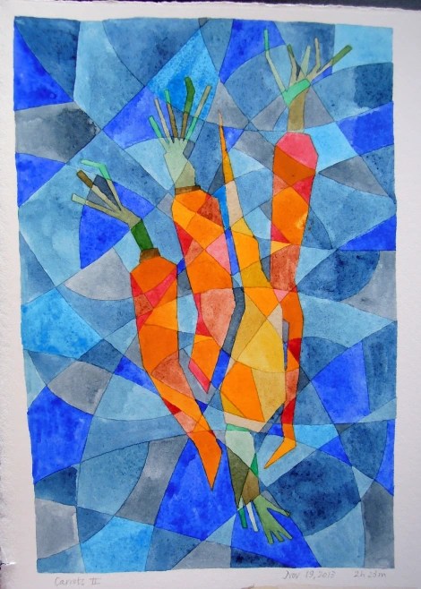 Two other things I discovered about carrots in doing the research for this: 1) Baby carrots are just regular-sized carrots cut down into smaller pieces; 2) Bunnies don’t really like carrot roots. They prefer carrot greens which, in addition to their seeds, is what people used to grow them for, too.