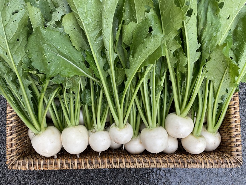 Hakurei Salad Turnips – Salad turnips are delicate, tender and almost buttery in texture. These turnips are meant to be eaten raw and do not need to be roasted. Store in a plastic bag in the crisper drawer of your fridge. They will easily keep for six to eight weeks this way.
