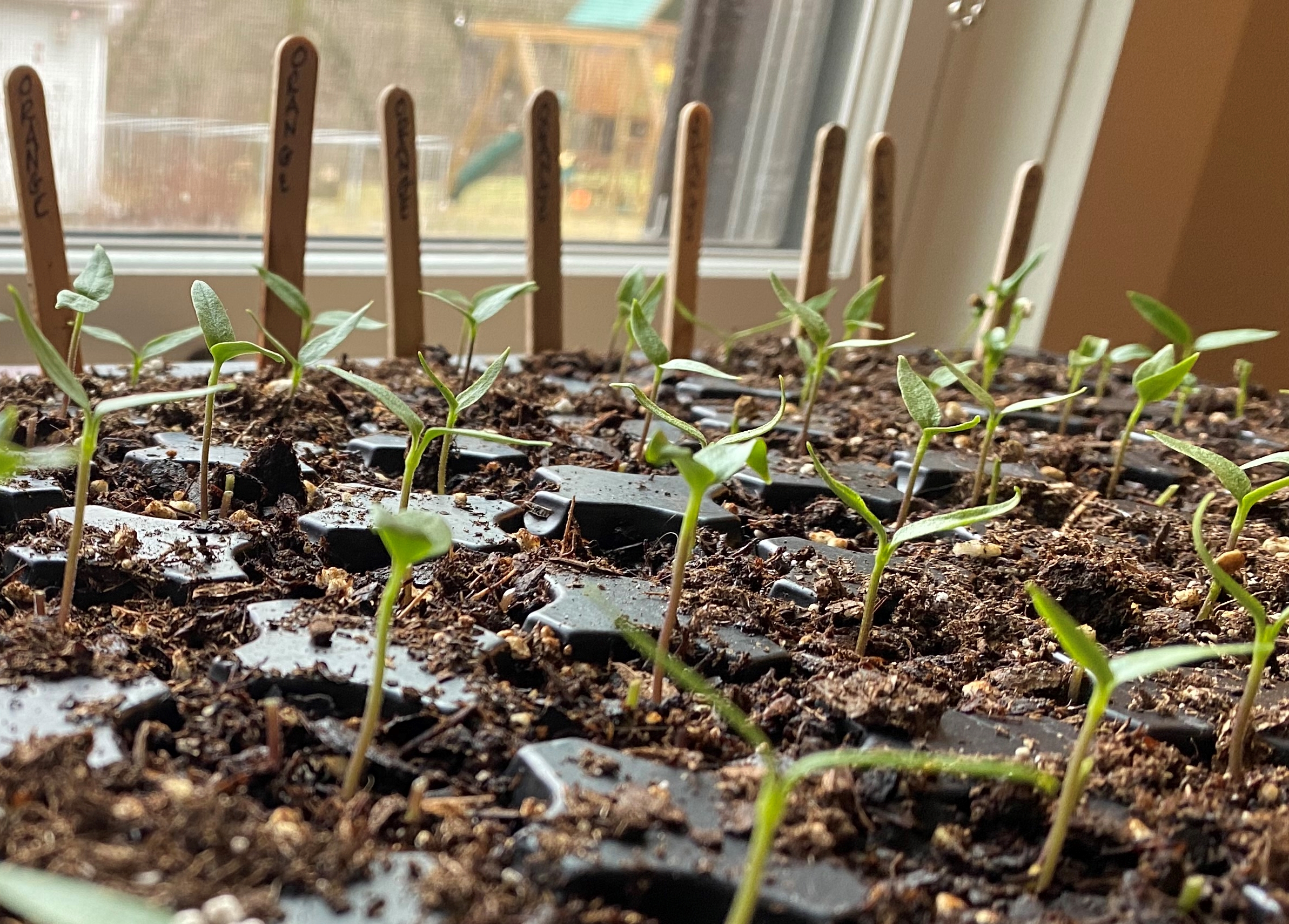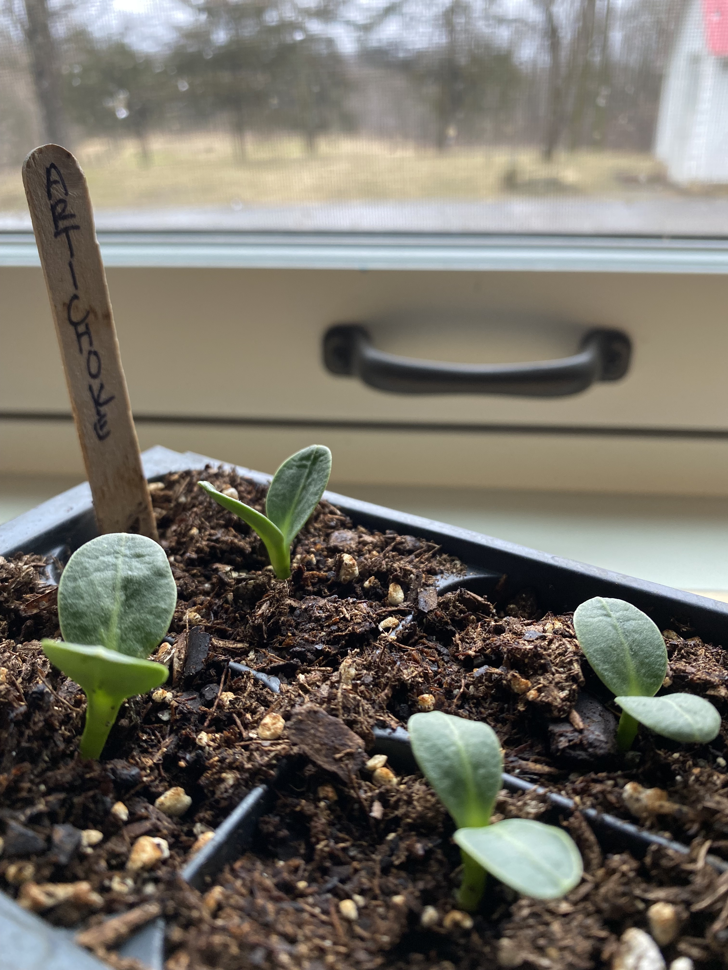 The good news is that I have hundreds of little seedlings under grow lights inside a warm, cozy house right now and as soon as outdoor temperatures rise, they’ll be transplanted into the field where they will really take off. Many veggies do best if they are started as seeds indoors rather than direct seeded into the ground. This gives varieties that take a long time to mature a head start in places like Minnesota where our growing season is short. So far, I’ve started tomatoes, cabbage, broccoli, Bok choy, lettuce, eggplants, cilantro, and leeks, among others. Look at these beautiful little artichokes and peppers. In just a few months, you’ll be eating veggies from these!