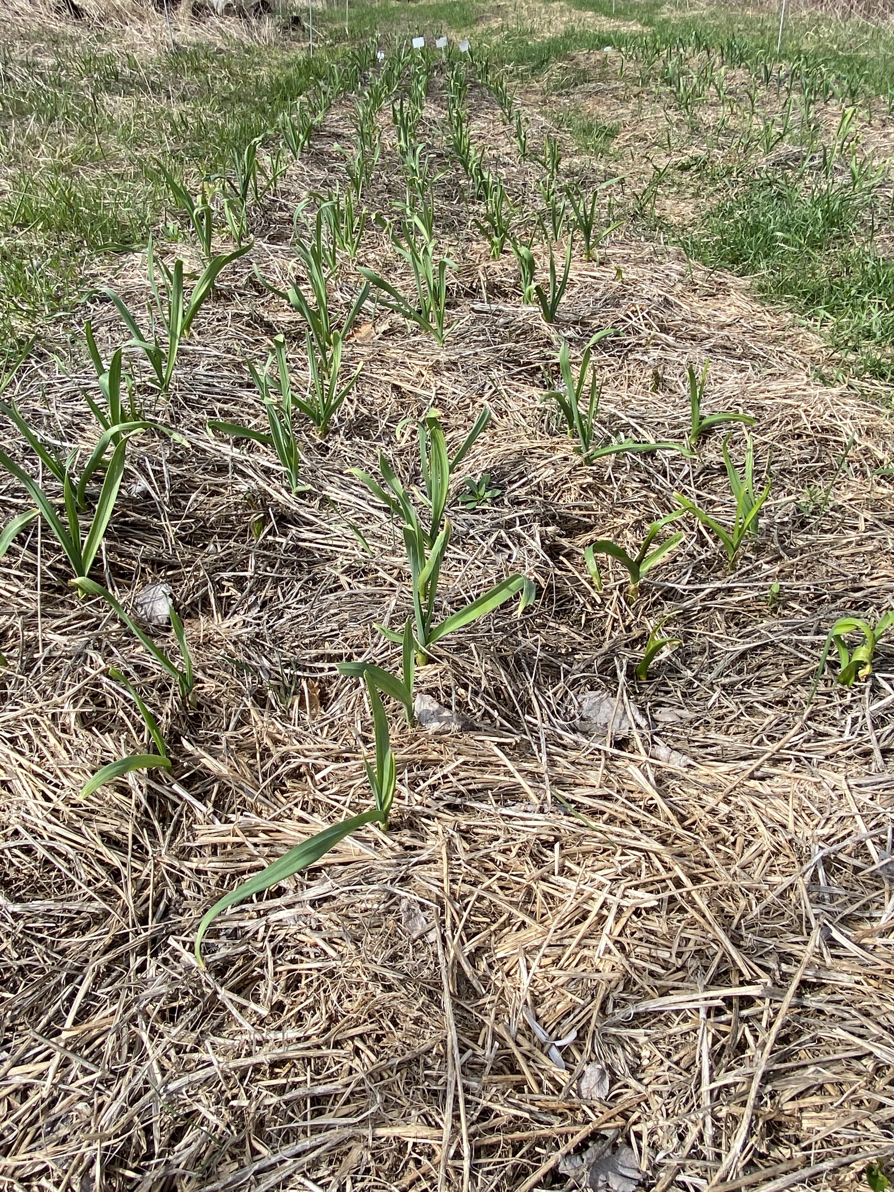 The garlic has been growing very well since we took off the row cover and put up the electric deer fence two weekends ago. It is amazing to see how resilient plants are: the garlic seems to have recovered just fine from the earlier deer grazing and is now growing strong and tall.