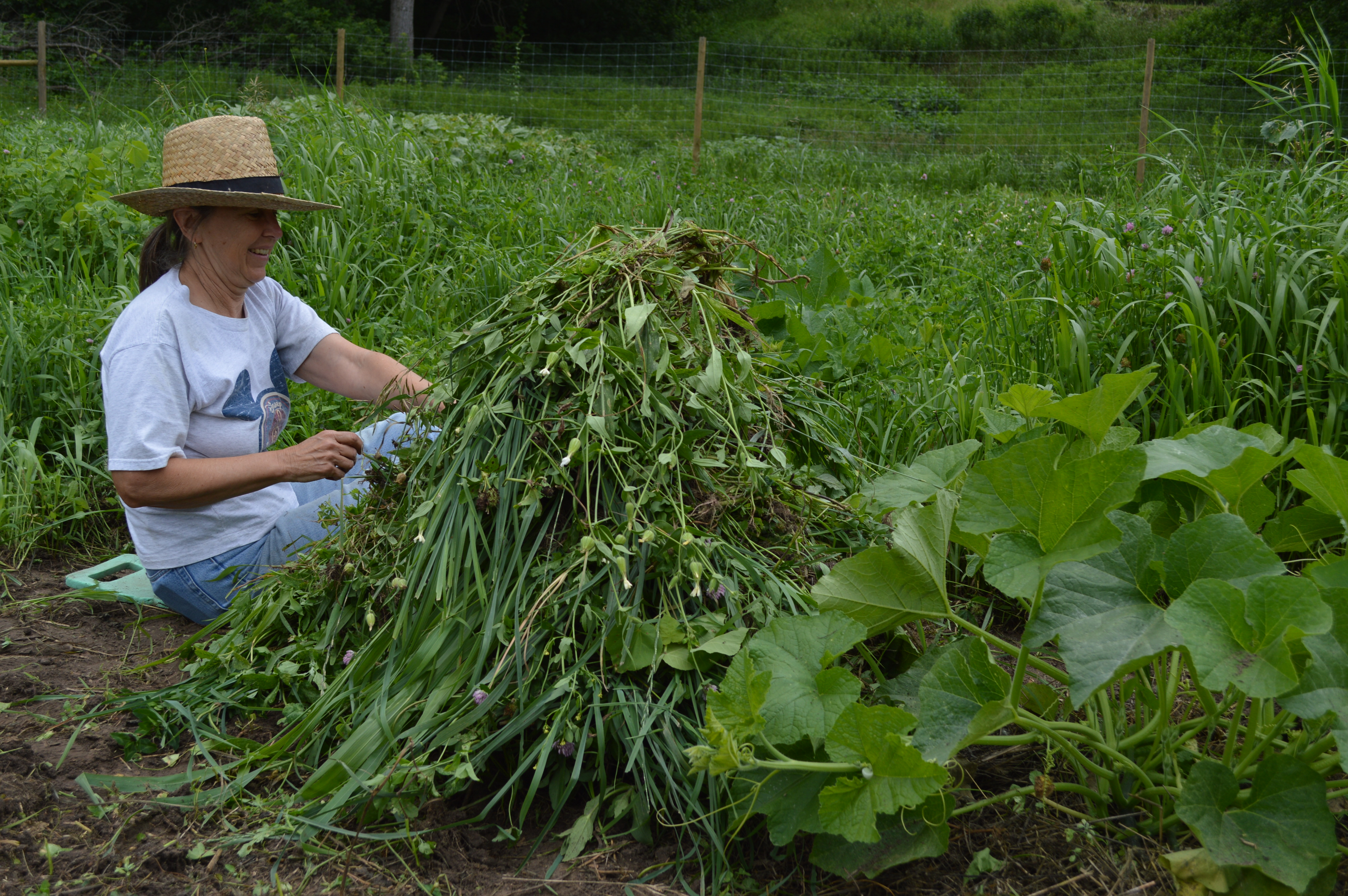 Besides encouraging the veggies to grow, the warm weather and rains made the cover crops (and weeds!) in our field grow so tall so quickly that Erik had to haul out the mower, lest we start to loose tools in the jungle down there.