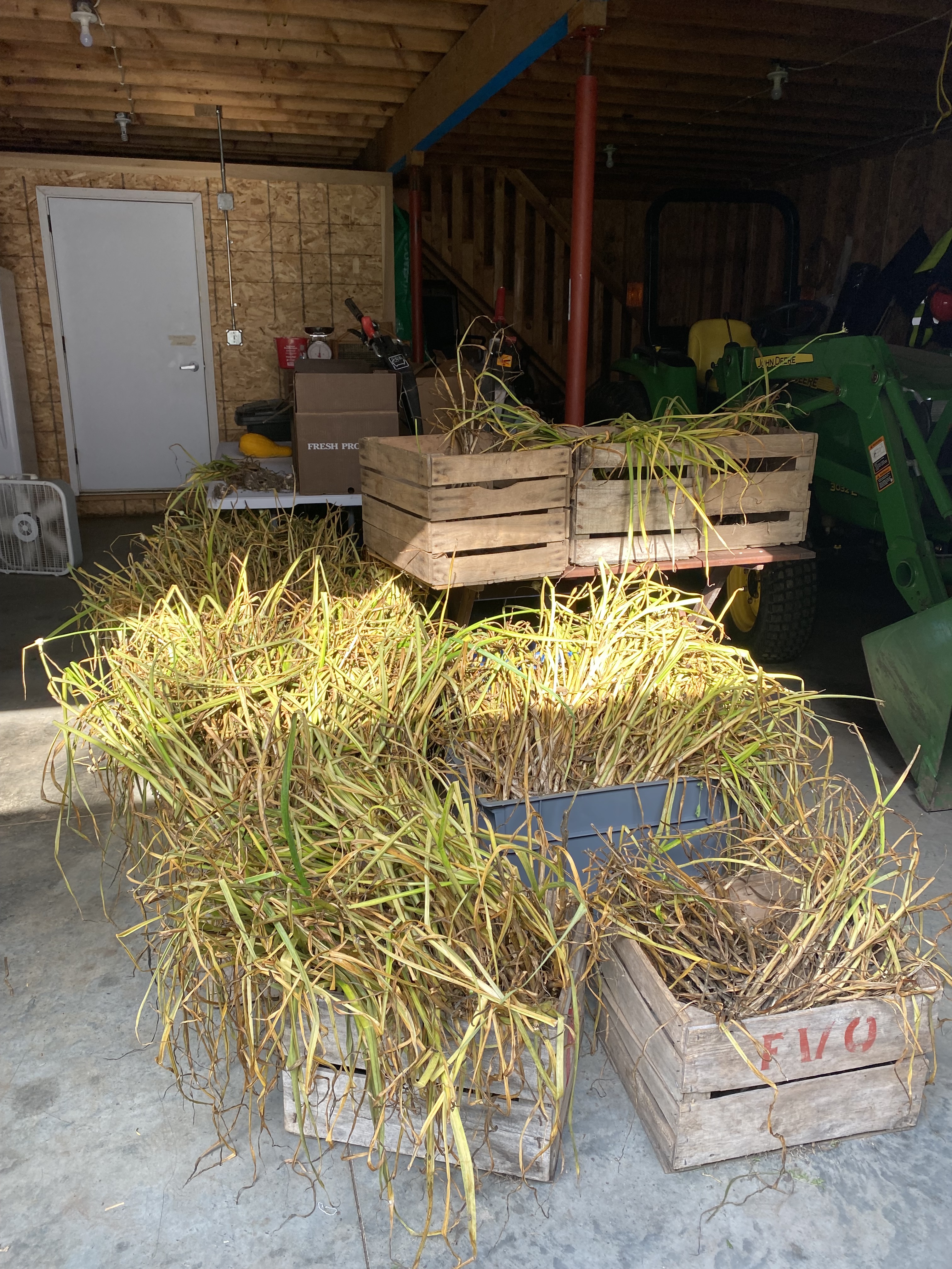 The only other task that needed to be accomplished last week was processing the white onions that had been curing in the barn over the last few weeks. Erik’s parents, Lynn and David, stopped by for an overnight visit this past Thursday and were kind enough to help me clean and ready them for storage in the cooler. We had a nice time catching up and enjoying the picture-perfect fall weather. Thanks, Lynn and David!