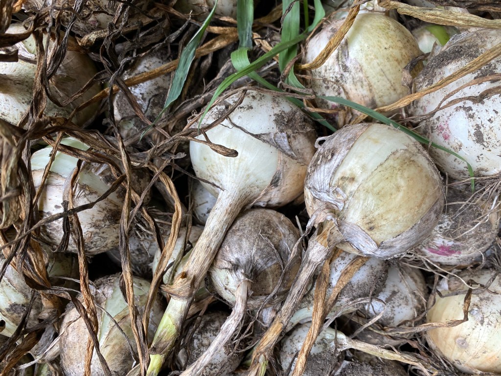 Garlic – Keep in a dark, dry, well-ventilated place at a cool room temperature. It can keep for several months if stored appropriately. Warm temperatures will encourage the cured garlic to sprout which will reduce the quality of it.