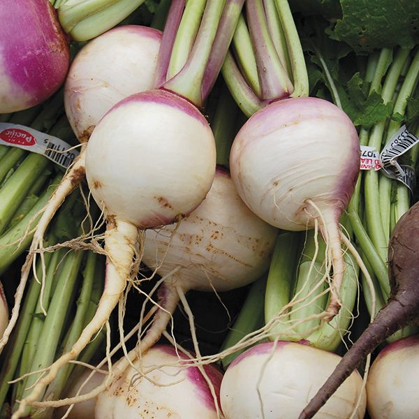 Rutabagas – Rutabagas originated in the 17th century and are a cross between a turnip and a wild cabbage. Because of this, rutabagas have a slightly bitter flavor similar to cabbage, but they are sweeter and milder than turnips when eaten raw. After cooking, they retain their sweetness while also becoming more savory. Store unwashed rutabagas in a plastic bag in the fridge for a month or longer. (Photo: High Mowing Seeds)