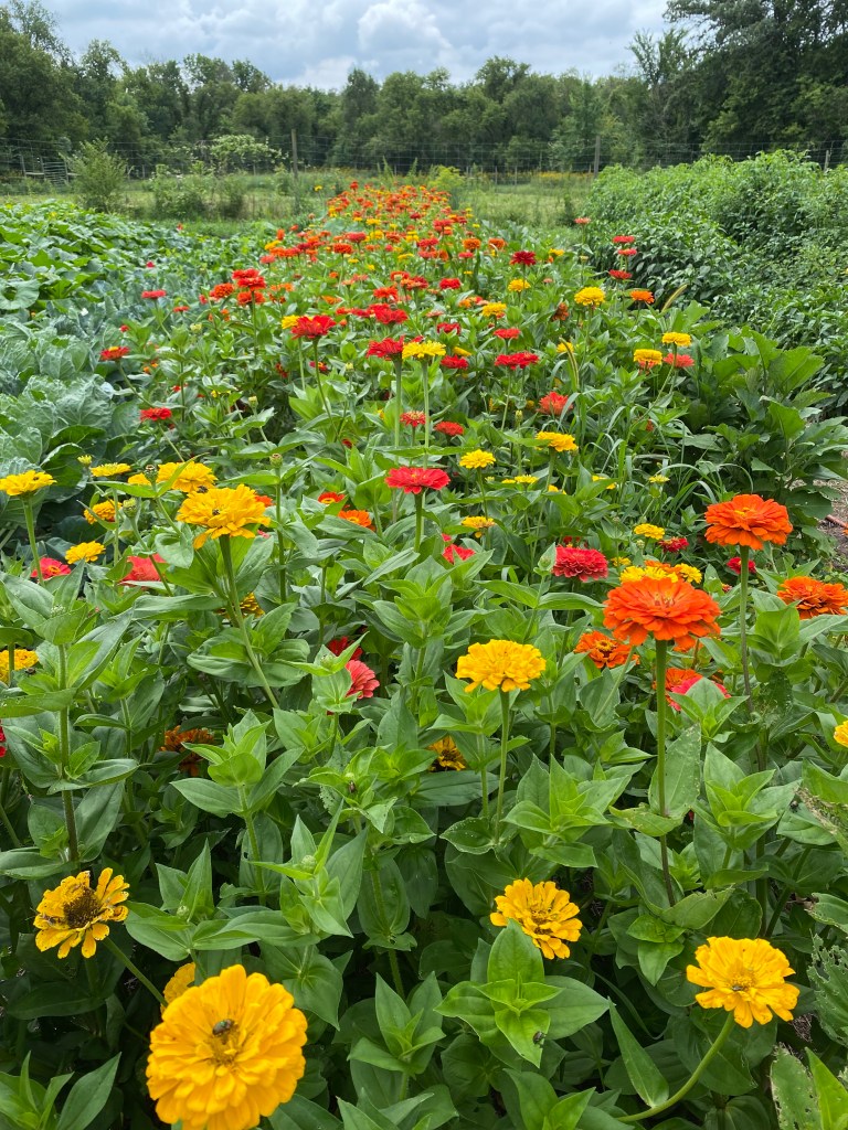 I did manage to get some flower seeds in the ground on Friday. I planted a whole 3′ x 75′ row of orange, yellow, red, and coral zinnias which, when in full bloom later this summer, will attract butterflies and bees and make us happy to look at.