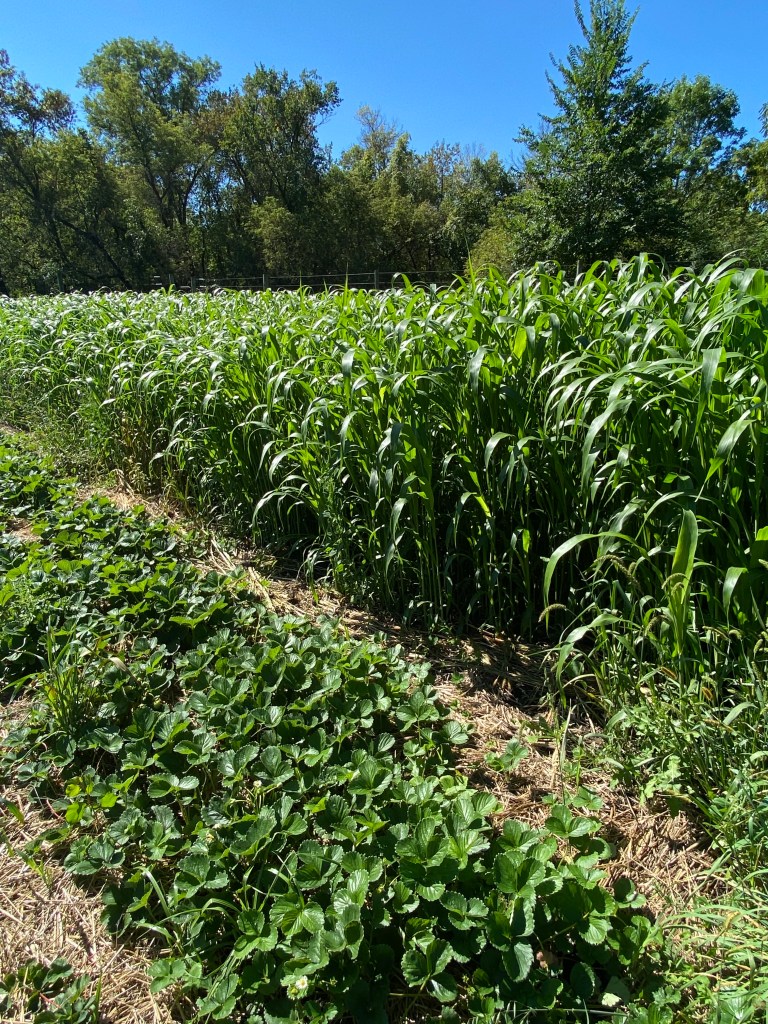 One thing that had me very excited while I was down in the strawberry field was seeing an Eastern bluebird sitting on the bluebird house we always put down in the field for them. Every year, we have a couple of bluebirds build a nest and hatch out one or two clutches of baby birds. The kids and I enjoy checking on the nest and hatchlings as the summer goes on, and I enjoy having the birds to keep me company while I’m working in the field. Eastern blue birds are insectivores, and I like to think that they are helping us out by eating some of the insect pests that would otherwise eat our crops. In 2021, hundreds of thousands of bluebirds died in a freak February storm down south, where they spend their winters, and no bluebirds found their way to our farm last year. We really missed having them around and I am thrilled to welcome them back.