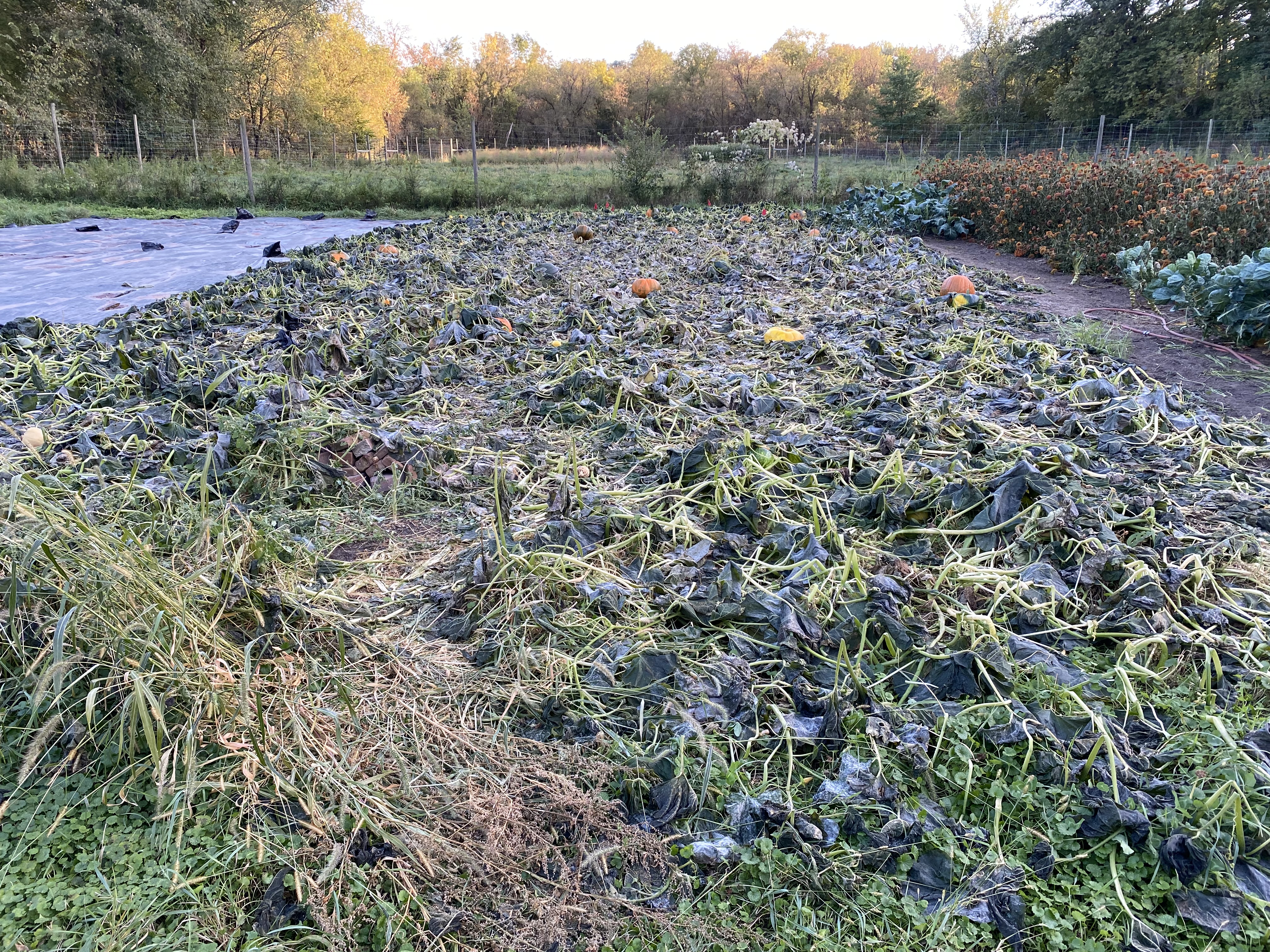 Last up on the farm will be pulling out the dead tomato vines and hauling them far away from the production field so as to prevent the leaf spot disease they had from overwintering in the field and infecting next year’s plants. I will flail mow down the remaining crops and let them decay in place, providing cover for the soil and food for the critters that live in it. The garlic will be planted in the next couple of weeks and the strawberries covered in a thick layer of straw mulch to keep them nice and cozy until spring. At that point, I will also be nice and cozy, more indoors than out for the first time in months, looking through seed catalogues and sipping hot cocoa with the cat purring on my lap. Wish me luck as I make plans for a wonderful 2023 growing season!