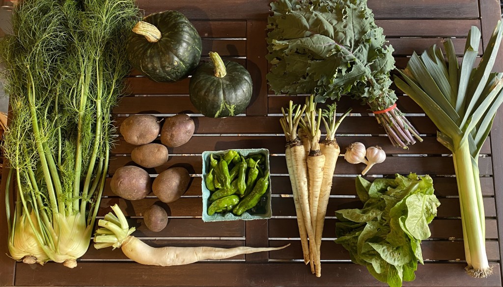 Holy cow! We’ve done it! We have (nearly) finished our first season of CSA together. I will take some time once the fields are cleaned up for the winter to make some notes about what I should do differently next year (more heirloom tomatoes, more tender Chinese broccoli, prune those pumpkins!). I will also crunch some numbers, but even without knowing the final yields, I am feeling very grateful for what the land produced and for all of you who took a chance on us, most of you having never belonged to a CSA before.